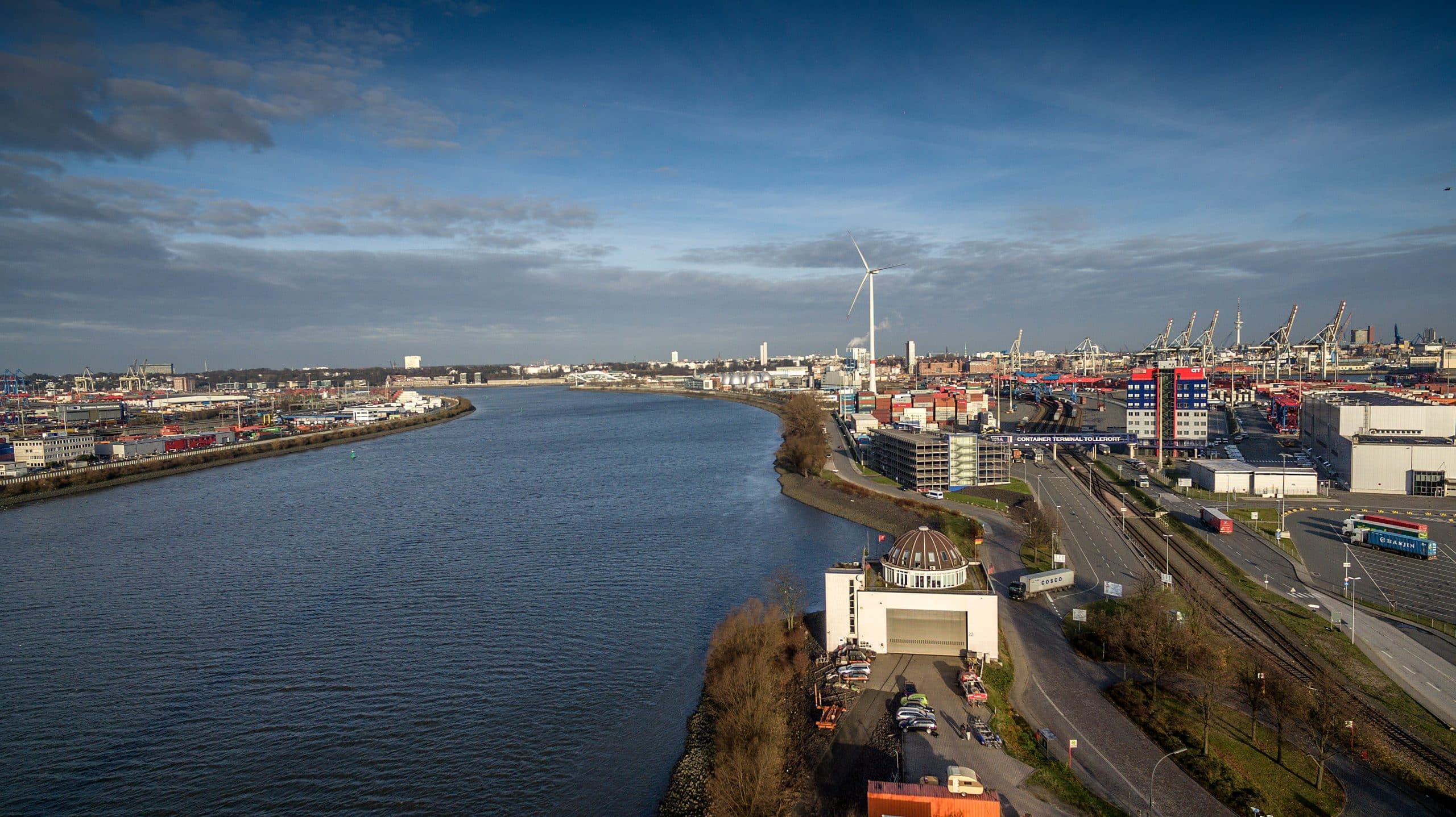 Our Headquarter is located in the heart of the Port of Hamburg near by the Köhlbrandbridge. At this place also our wharft and factory and workshop can be found where Mooring Tugs and Mooring Cars are constructed and maintained. Additional we keep several places all over the area of the Port, so our teams including almost 100 employees together with the Equipment are able to reach the place of action very quickly. Our Disposition is located at the famoust building at the entrance oft he Port where also the Harbour Pilots and the nautical headquarter of the Port can be found. Form this place we coordinate our complete missions around the clock.